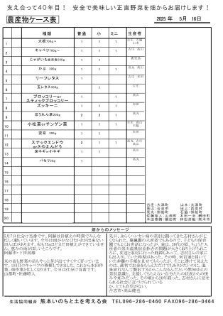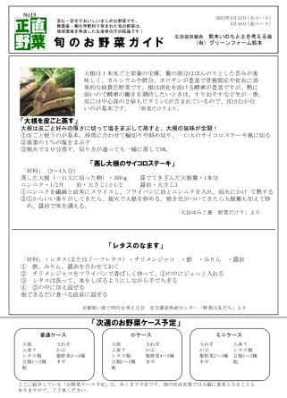 (配信予定 月:注文書「いのちと土」 火or水:「旬のお野菜ガイド」と「農産物ケース表」
