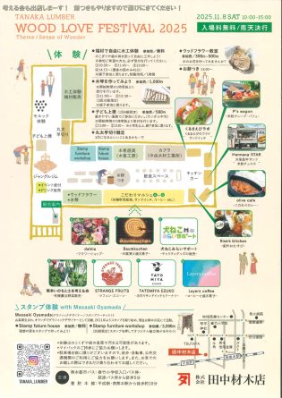 「WOOD LOVE FESTIVAL 木愛祭」 11月8日(土) 10:30~ 田中材木店 琴平本社