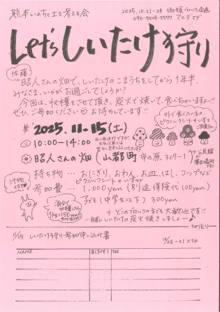 御領ブロック企画「Let’sしいたけ狩り」 11月15日(土) 10:00~ 山都町の佐藤昭人さんの畑