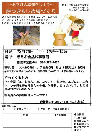 リトルファーマーズ 「餅つき&しめ縄づくり」12月20日(土) 10:00~14:00 考える会事務所