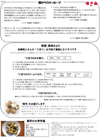 3月17日(火)・20日(金)配布の「いのちと土」です(注文書提出日は3月24日・27日です)