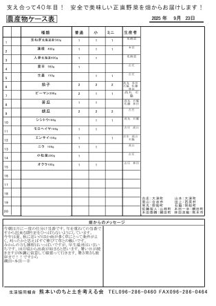 - 2025年9月29日今週の注文書週刊「いのちと土」No42